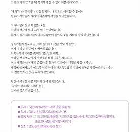 사교육걱정없는세상 썸네일형 리스트형 [5회총회뉴스레터]희망이여, 날아라! 노란 비행기 속 희망의 말들 2012년 총회 마지막 순서는 사교육걱정없는세상을 꿈꾸는 우리의 다짐, 그리고 바람을 담은 노란색 종이 비행기를 날리는 퍼포먼스로 장식하였습니다. 총회에 참석하신 회원분들이 노란 종이비행기에 적은 다짐과 소망은 무엇일지, 확인해보세요.^^ 사교육걱정없는세상을 만난 건 운명이 아니었나 생각합니다. 이야기만 들어도 가슴이 심장이 뛰는 것을 어찌할 수 없어요~ 우리 아이들이 행복할 사교육걱정없는세상. 앞으로 꼭 옹리라 생각되어지고 그 일에 미약하나마 함께 힘을 모아보고자 합니다. 그 믿음이 흔들리려고 할 때마다 사교육걱정없는세상과 호흡하며 새로운 세상에 대한 믿음, 그 기대감을 끝까지 유지하려 합니다. 나에게 축복의 선물로 다가온 사교육걱정없는세상!! 당신이 있어서 행복합니다!! 카페를 통해 총회까지 참석하게.. 더보기 [5회총회뉴스레터] "우리는 승리자입니다." (4주년 회고영상) 사교육걱정없는세상 창립 4주년을 맞아, 신입 영상 담당 정성화 간사님이 젊은 감각으로 제작한 4주년 회고영상입니다. 외로우나 외롭지 않은 싸움, 바보같으나 실상은 승리자인 우리! 사교육걱정없는세상의 크고 작은 일들을 함께 해온 반가운 얼굴들, 그때의 감동들을 되살리며 감상해보시지요^^ 더보기 [성명서] 2014년 수능시행방안, 우려와 보완책... ■ 2014학년도 수능 세부 시행방안 발표에 대한 입장(2011. 12. 21) “2014년 수능시행방안은 학습 부담과 사교육비 부담을 오히려 가중시킬 것입니다.” ▲ 수준별 시험(A/B형) 도입, 탐구과목 축소, 문항수 축소 등은 정책취지와는 달리 학생의 시험 준비 부담을 줄이지 못하고, 불필요한 혼란만 초래할 것임... ▲ 대학이 교육적으로 타당하지 않고 대학교육 ‘적격자’ 선발과도 무관한 촘촘한 방식의 ‘변별력’을 포기하지 않는 이상 ‘쉬운’수능은 대학별 고사 강화와 스펙관리 부담 증가로 귀결될 것임... ▲ 결과적으로 2014년 수능 시행안은 수능 준비부담은 줄이지 못하면서, 대학별 고사와 스펙관리를 위한 학습 및 사교육비 부담만 늘어나도록 만들 것임... ▲ 수준별이 아닌 단일화된 ‘쉬운’수능 .. 더보기 [성명서] 절대평가 도입의 전제조건 두가지... ■ 교과부의 절대평가 도입 계획 발표에 대한 입장(2011. 12. 14) 절대평가에 대한 진정성이 있다면, 두 가지 조건을 우선 갖추어야 합니다. ▲ 교과부가 어제 발표한 절대평가 도입은 교육적으로 분명히 필요한 정책이지만, 현재의 제도적 환경에서는 틀림없이 부작용만 양산하고 좌초할 것임. ▲ 절대평가 도입과 성공적인 정착을 위한 제도적 환경으로서 첫째, 점수 위주로 서열화 된 고교 체제를 재정비하는 것과, ▲ 둘째, 절대평가 도입 취지에 반하는 대학의 자의적 선발권 행사에 대해 사회적으로 규제할 수 있는 획기적인 조치가 선행되어야 함. ▲ 이러한 제도적 환경을 갖추지 않은 상태에서 절대평가를 도입하는 것은 아무리 교육적 가치를 명분으로 내세운다고 해도 일부 자사고와 특목고, 대학의 이해만 만족시키는 .. 더보기 [상담넷 뉴스레터②] 늘 놀고 싶어하는 아들... 더보기 [수학포럼 결과보도] '전국 자사고 수학교육과정 및 시험 분석결과'...(+자료집 다운) ■ 전국 자율형 사립고의 수학 교육과정 및 1학기 기말고사 분석 결과 보도자료(2011. 12. 5) [첨부] 토론회 자료집 HWP 파일 다운 받기 [첨부] 토론회 자료집 PDF 파일 다운 받기 “자율형사립고의 수학교육과정 및 시험 운영은 상식을 벗어난 것입니다.” ▲ 사교육걱정없는세상은 지난 9월 수도권 지역 자사고 조사 이후 후속작업으로, 김춘진 국회의원실이 국정감사 자료로 요청한 전국의 51개 자사고의 수학 교육과정과 1학기 기말고사 시험지를 입수하여 일반고와 비교‧분석을 실시 ▲ 1학년 ‘수학’ 교과 1년 과정을 한 학기만에 마치는 속진 비율 : 자사고 41.2%(전국 51개 학교 중 21개), 일반고 2.4%(84개 학교 중 2개) ▲ 2학년 1학기 자연계 수학시험에서 실제 편성된 과목보다 앞선.. 더보기 [박재원 소장의 부모역할 조언②] '경쟁이라는 괴물로부터 아이를 구한 엄마' 경쟁과 성장의 불화 그리고 갈등 상담을 요청한 버터플에게 단도직입적으로 말하고 싶습니다. 버터플님은 정말 훌륭한 학부모라고. 정말 위기상황에서 현명하고 지혜로운 선택을 했다고. 집단에서의 경쟁이라는 강력한 이데올로기의 포로가 되지 않고 아이의 성장이라는 새로운 세계로 향한 버터플님에게 또 하고 싶은 말이 있어요. '정말 고맙습니다!' 버터플님의 고민은 바로 경쟁을 위해 부모로서 아이에게 요구해야 하는 것과 아이 스스로 자신의 성장을 위해 선택한 것 사이의 불화와 갈등이라고 진단합니다. 보통 부모의 욕심과 아이의 욕구가 충돌하는 지점에서 자주 발생하는 상황이지만 깊게 통찰해보면 배후세력이 보입니다. 자신의 길을 가면서 성장하려는 개인의 지향과 경쟁에서 지면 안 된다는 집단의 압력이 보입니다. 어느 가정도 .. 더보기 [베스트 상담글②] 늘 놀고 싶어하는 아들, 엄마인 저는 괴롭습니다.. 수업시간에 할 일이 많다는 아