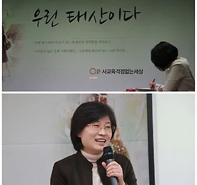 이름 윤 지 희, 아이가 초등학교에 입학하면서, 과도한 사교육으로 아이들을 내모는 학부모들을 보며 흔들리는 마음을 다잡고자 참교육학부모회에서 교육운동을 시작했다는 그녀는, 특유의 뚝심으로 교육운동에 매진, 참교육학부모회 회장, 교육과 시민사회 대표를 거쳐, 2008년 송인수 대표와 사교육걱정없는세상을 창립. “윤지희 선생님은 꽃집을 열더라도 전국화원연합회장을 하면서 유통구조 개선운동을 하고, 죽기 전에는 장례문화 개선운동을 하다가 관 뚜껑을 닫을 것이다”라는 송 대표님의 농담처럼, 정의에 살고 정의에 죽는 자칭 타칭 “정의의 돌쇠”! “기도와 은총, 혹은 나와 우리가 아닌 무수한 대중의 힘, 그 모든 것이 이루어진 상상 그 이상이 될 때에만 우리가 소망하는 세상이 올 것이라는 믿음”으로 “사교육걱정없는세..