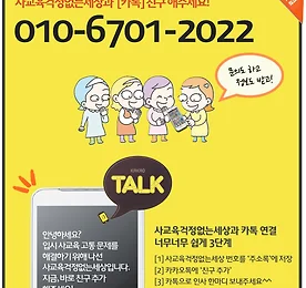 시민단체 모바일 썸네일형 리스트형 사교육걱정없는세상과 카카오톡 친구해주세요! 사교육걱정없는세상 공식 모바일 번호는 010-6701-2022 입니다. 카카오톡, 마이피플 연결 환영합니다 ^^ 문의: 02-797-4044~4046(온라인 커뮤니케이션팀) 더보기 이전 1 다음