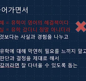 엄태현 썸네일형 리스트형 [영어뉴스②] 조기유학, 성공 수기를 조심하라... 더보기 [2강 강의스케치] 해외 영어캠프, 조기유학에 대한 오해와 진실 대학생들에게 어학연수는 필수코스가 되었습니다. 휴학을 하고서 짧게는 한 학기, 길게는 졸업 후 대학원 진학으로 유학의 길에 오르는 친구들을 쉽게 찾을 수 있습니다. 그런데 제 나이 또래보다도 훨씬 어린 중고등학생, 심지어는 유치원생, 초등학생들이 그 유학을 떠난다고 합니다. 어떤 초등학교에서는 방학을 하면 학생들이 다들 유학을 가서 돌아오질 않아, 개학을 해도 몇몇 아이들은 아예 교실에서 찾아 볼 수 없다던 기사를 본 적이 있습니다. 이제 ‘가나다라’를 배우기 시작한 아이들이 한국에서 영어공부를 하는 것도 모자라, 해외에 가서까지 영어공부를 해야 하나 싶습니다. 유학길에 오르는 무수히 많은 대한민국의 초중고생들. 과연 그대로 놔둬도 괜찮은 걸까요? 엄태현 강사님은 ‘유학만이 영어의 해결책이다.’ 혹은 ‘.. 더보기 [2강 베스트소감문] 역시 쉬운 건 하나도 없구나 (윤스윤스님) 엄태현 선생님 1강은 아직 못 들었는데 김선미 교수님 강의와 엄태현 선생님의 2강만 먼저 듣고 잊어버릴까봐 일단 소감문 씁니다. 사교육걱정없는세상의 여러 학교들을 만난 이후 밤 새는 날이 얼마나 많은지 모르겠어요. 밤 시간이 아니면 강의를 집중해서 잘 들을 수가 없어서 자꾸 새벽에 듣다 보면 저도 모르게 날이 밝아오네요. 아무튼 이번 강의들을 들으면서 든 가장 주된 생각은 '역시 쉬운 건 하나도 없구나' 였습니다. 개인차가 있겠지만 아무튼 일정 정도 정해진 만큼의 시간과 노력을 투자해야 얻을 수 있는 영어에서의 소득을 남들보다 쉽게, 빨리, 말하자면 '돈으로 사려고' 한다고 해서 되는 일이 아니라는 사실을 다시 한 번 깨닫게 되었습니다. "잠시 갔다 오면 될 것 같다"는 가벼운 마음으로 결정을 할 때 쉽.. 더보기 이전 1 다음